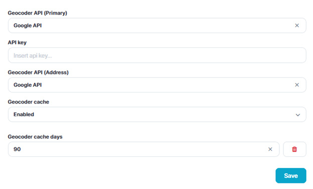 - Enable Geocoder Cache: Toggle this option to enable or disable caching for geocoder responses.