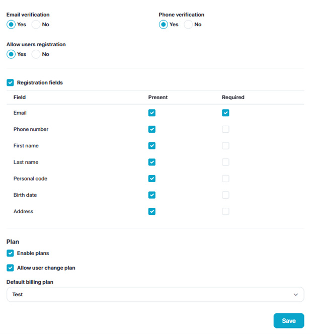 Email verification – If the option is chosen “Yes”, users will be receiving an email verification to verify their identity by email.