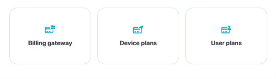 The platform offers a variety of payment gateways that you can set up to allow users to pay for device plans and related services.