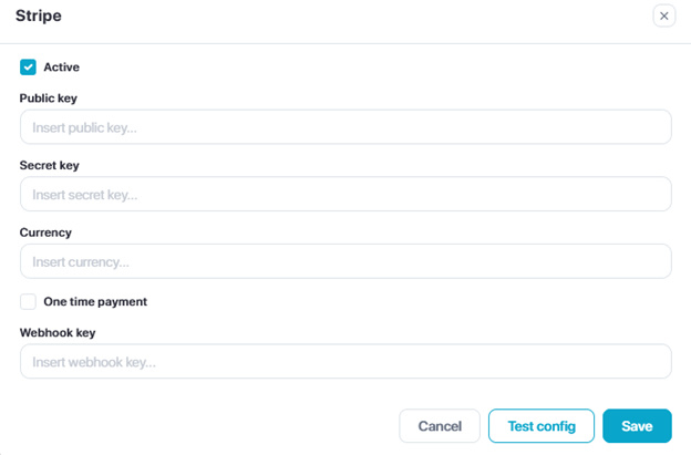 - Enter the Webhook Key to enable secure communication between your platform and the payment provider.