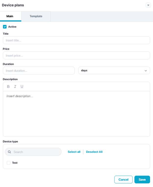 - Duration: Define how long the plan will be valid (e.g., days, months).