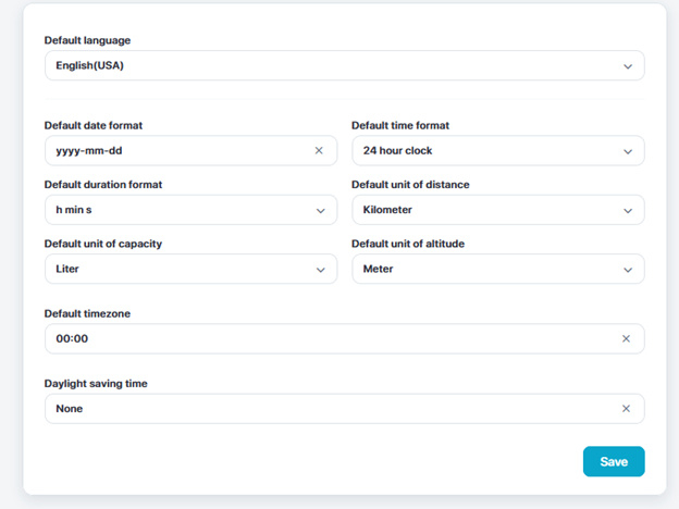 Default unit of capacity - applies to all users. Can be set in liters or gallons.