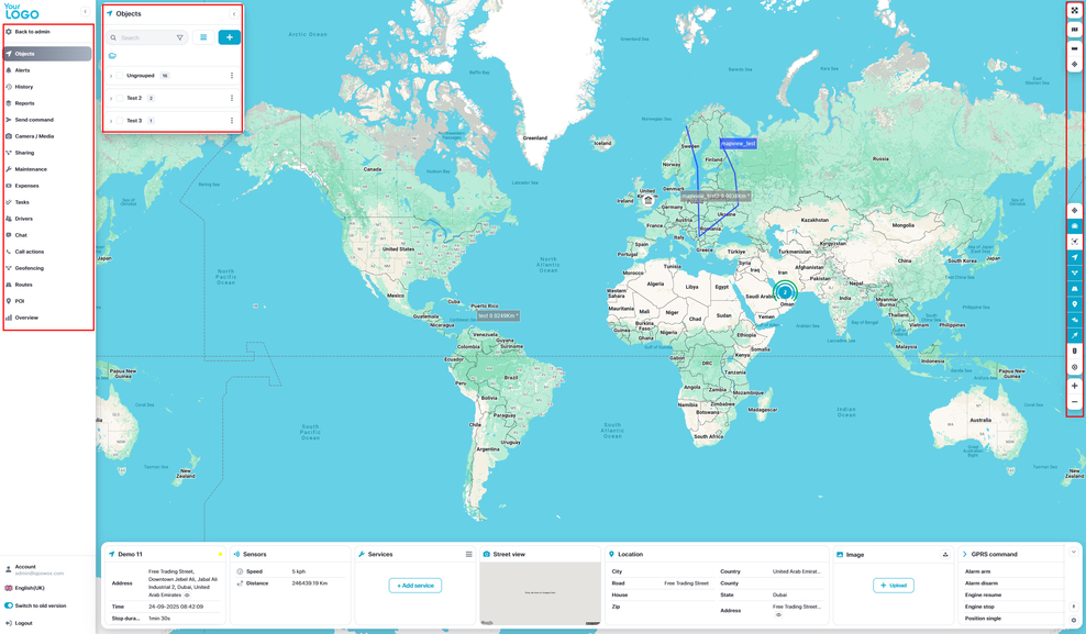 - Geofences – Enables/Disables geofence areas displayed on the map.
