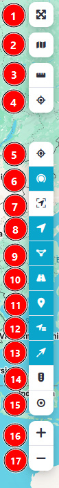 Once logged in, the main page of the platform is a map with controls and a side panel with various features available.