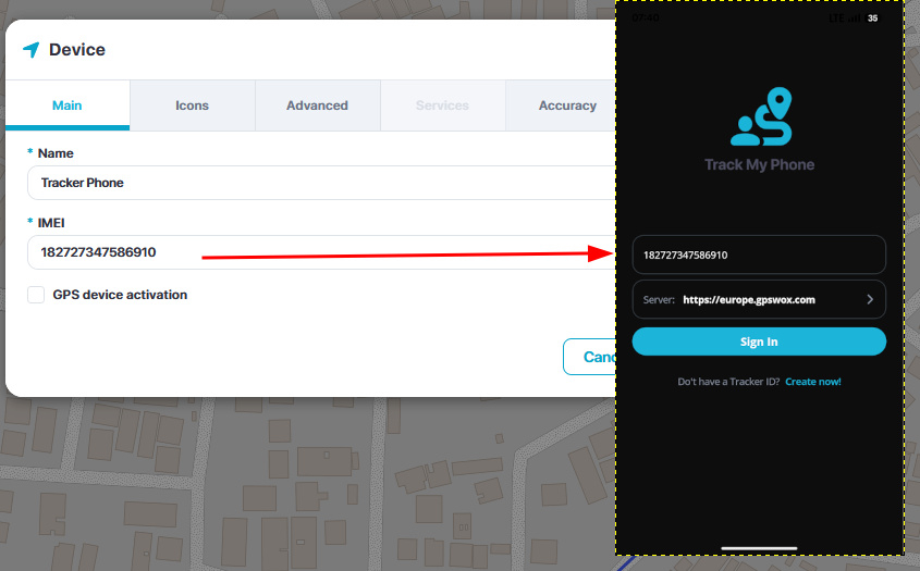 9. Check the web platform. In a few minutes (depending on your frequency rate) you'll see the location of your phone on a map