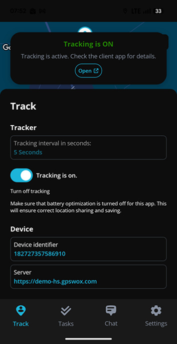 8. Go to the in-app settings and press the "Enable Tracker" switch to start tracking.