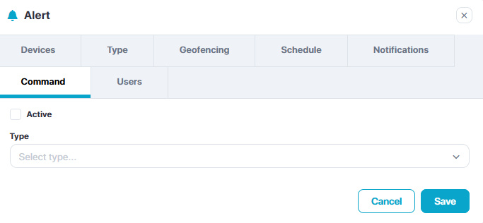 Select command to activate when alert generates. Command will be sent to device through GPRS network.
