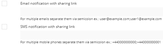 In the "notifications" tab, there will be 2 additional lines for emails and phone numbers that should receive the sharing link when the alert is triggered