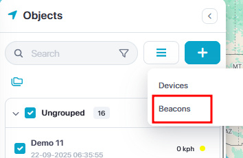 After setting permission on map view user will be able to add a new object and choose beacon.